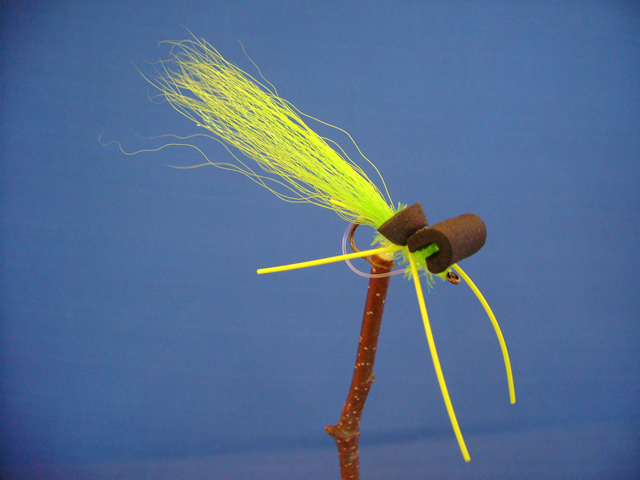 Available in sizes #4,#6. I designed these top water bass bugs to catch smallmouth on the upper Androscoggin River in NH and Maine. This fly casts very well and will float all day, it's also quite durable. I have spent days on "The River" as the Androscoggin is locally refered to catching smallmouth, chain pickeral and yellow perch all on the same Dans Dragon. I tie these bugs weedless so you can cast them into those tough places bass like to hide in. I can also custom tie these on stainless steel hooks if someone is interested in using them for salt water spieces, please specify in box provided.  Please specify size when ordering. Custom orders will take a little longer.