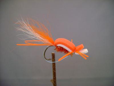Sizes #4,#6.This is a high floating bug that will move a lot of water when stripped in with quick pulls on the fly line. the bigger size offers quite a mouthful to whatever spieces your after, so be prepared for anything! These are a little harder to cast because they catch a lot of air, but once you get aÿgood length ofÿline out it gets easier. Sometimes it's a good idea to let the bass bug sit still for a few moments after it hits the water before starting the retrieve. Often, it's that first quick pull that gets the strike. The best retrieve is a quick pull, hold, quick pull, hold method.