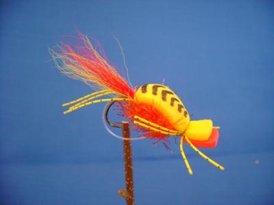 Sizes #4,#6.This is a high floating bug that will move a lot of water when stripped in with quick pulls on the fly line. the bigger size offers quite a mouthful to whatever spieces your after, so be prepared for anything! These are a little harder to cast because they catch a lot of air, but once you get aÿgood length ofÿline out it gets easier. Sometimes it's a good idea to let the bass bug sit still for a few moments after it hits the water before starting the retrieve. Often, it's that first quick pull that gets the strike. The best retrieve is a quick pull, hold, quick pull, hold method.